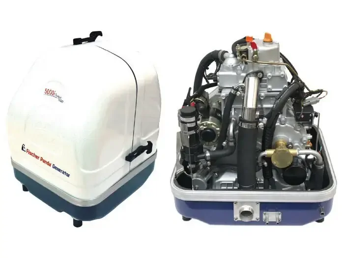 The Fischer Panda 5000i Neo PMS uses a water-cooled FPE320 single-cylinder diesel with permanent magnet synchronous alternator and advanced inverter tech for clean power and auto-speed adjustment (2200-3000 RPM). It’s the first in its class with full EPA Tier 3 readiness and cocoon sound shielding that drops noise to library levels—perfect for anchoring in crowded bays.